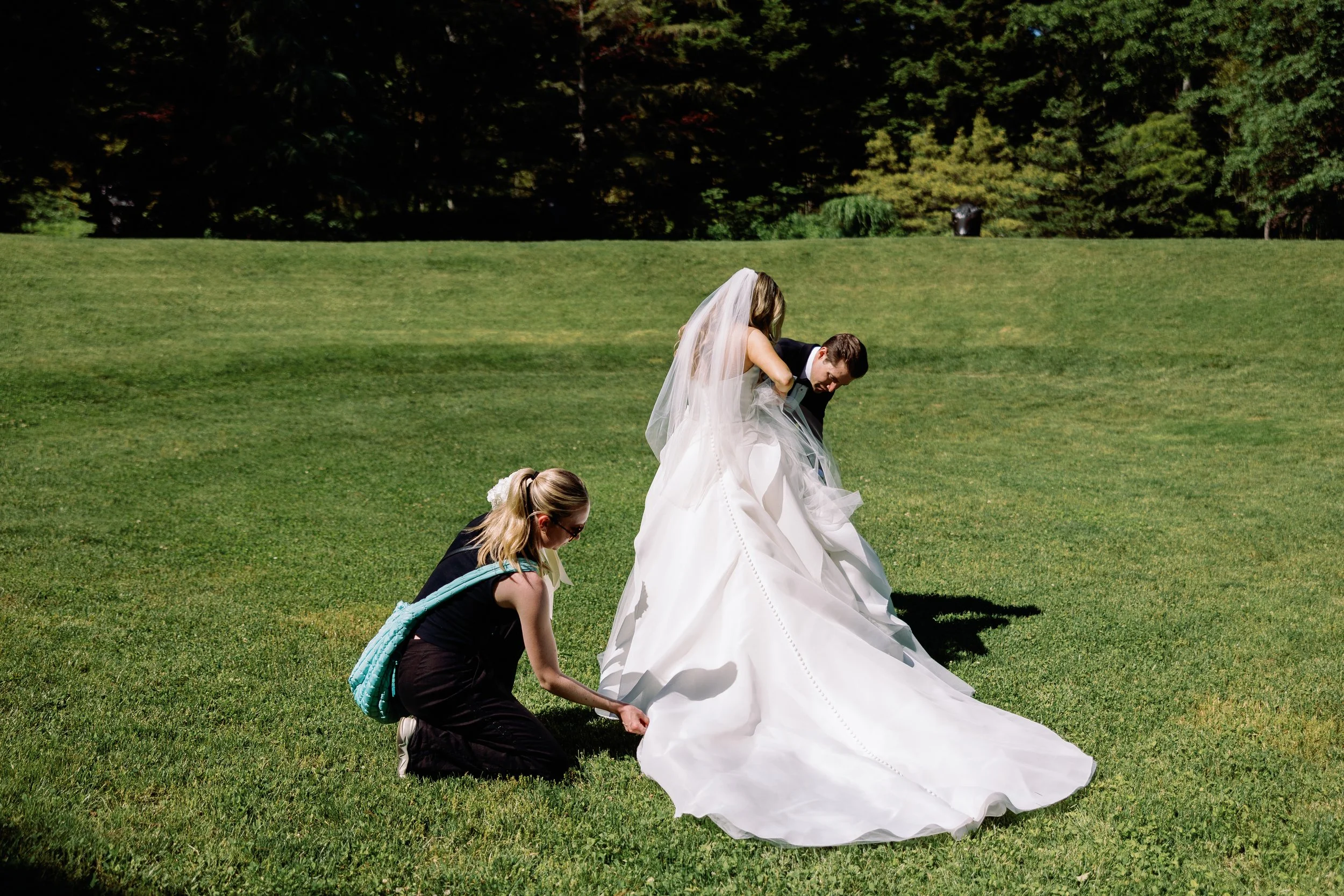 One of my favorite aspects of a wedding day is making sure the couple has everything they need, especially the perfect dress fluff for pictures!